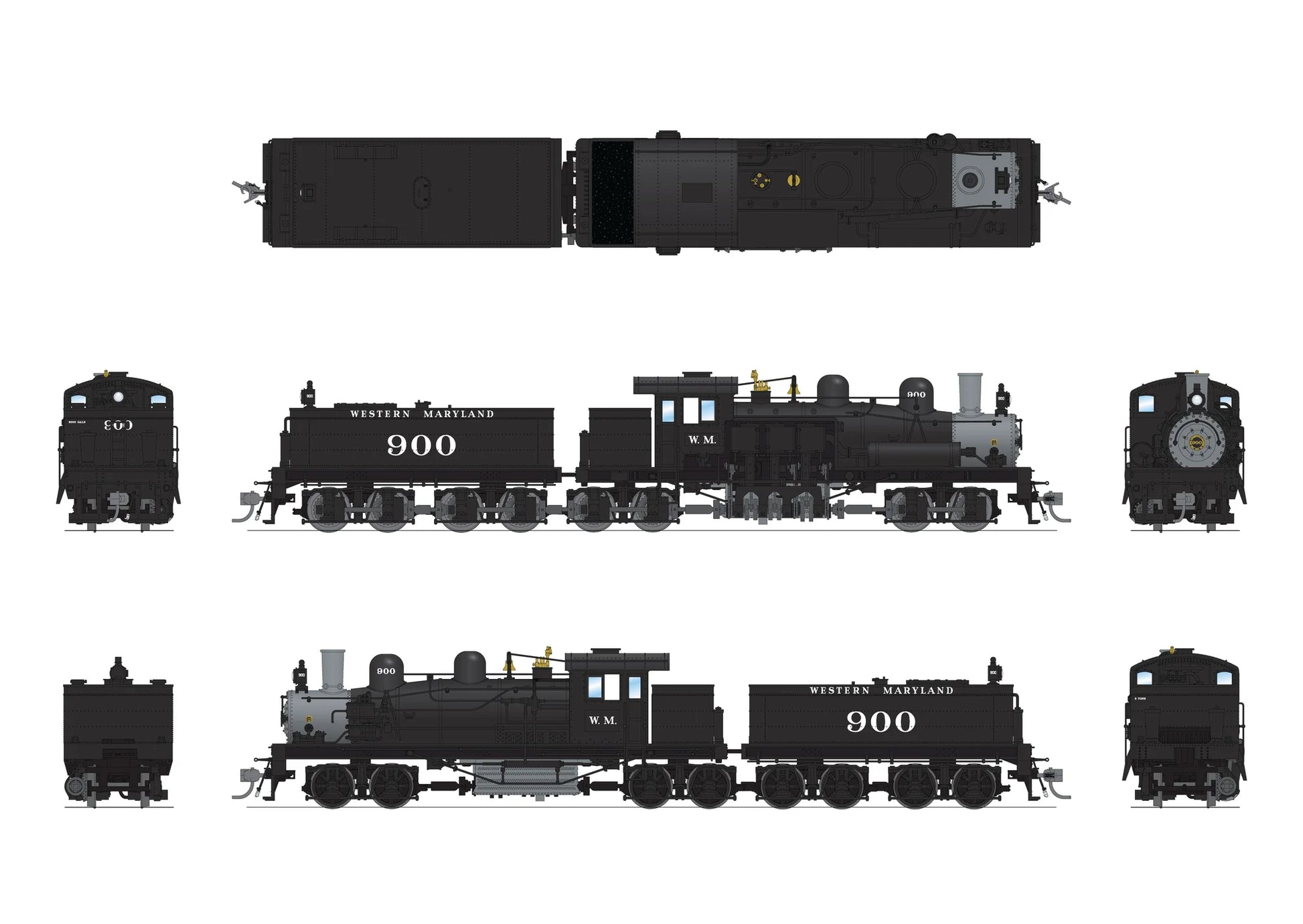 HO Scale 7819 Class D 4-truck Shay, WM #900, Paragon4 Sound/DC/DCC, Smoke